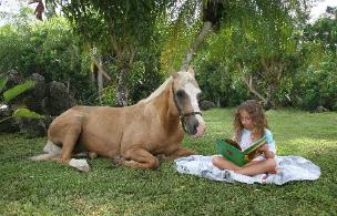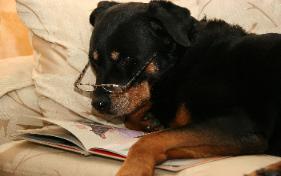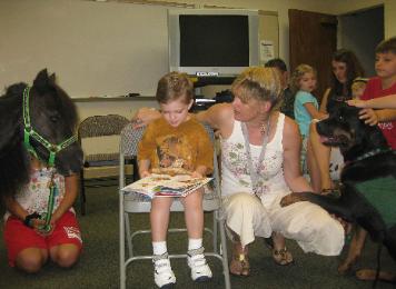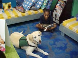 | Left-Reading to Dogs Below-Pawsabilities prison program Right-a victim of domestic violence in a safe house |